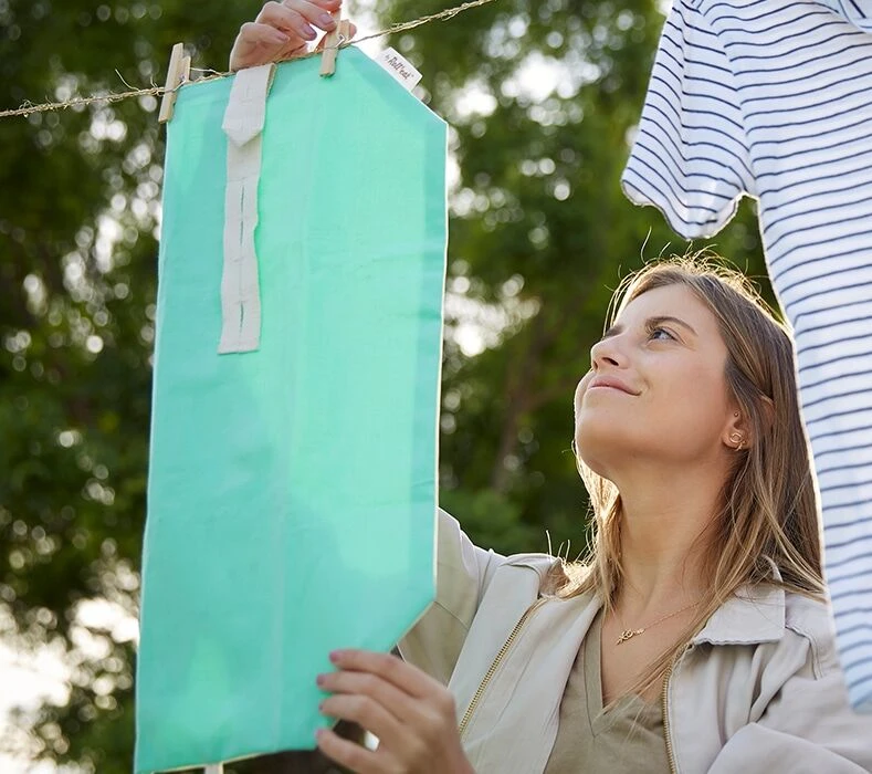 Neem de binnenzijde af met een vochtige doek of reinig in de wasmachine tot 30°C (bij voorkeur met koud water).