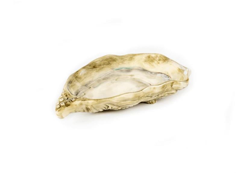 De Oldenhof oesterschaal is gemaakt van grijs aardewerk in de vorm van een oester.