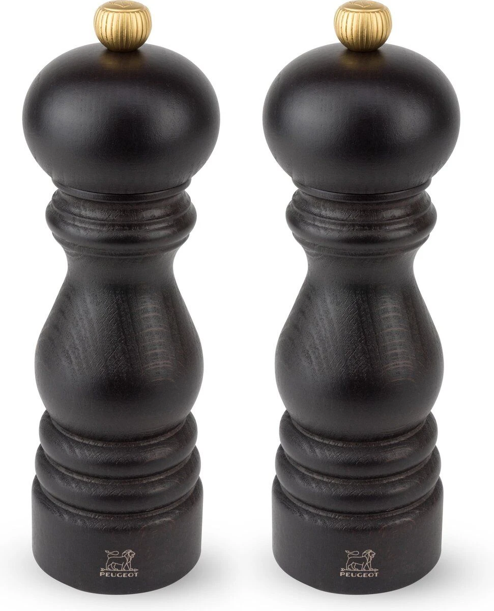 De Peugeot Paris chocolat peper- en zoutmolen heeft het klassieke Peugeot model, is uitgevoerd in donkerbruin gelakt beukenhout en heeft een hoogte van 18 cm. Het maalwerk in de molen is vervaardigd uit roestvrij staal. De molen is voorzien van u-select, waarmee u de grofheid van de korrel traploos kunt instellen. Op de metalen draaiknop bovenop bevindt zich de het logo van Peugeot.