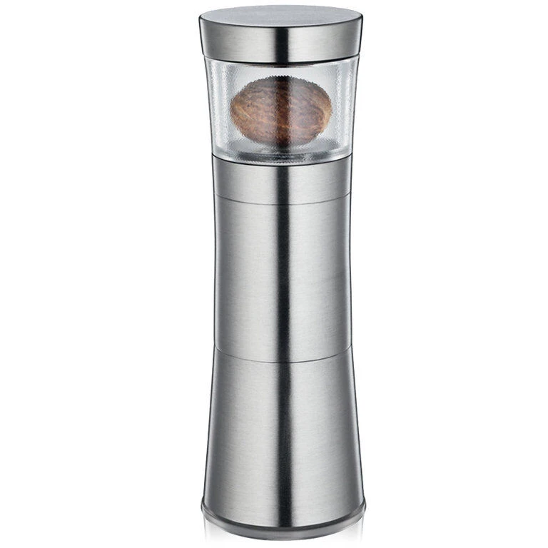 De Zassenhaus Mephisto nootmuskaatmolen is gemaakt van roestvrij staal met een transparant acryl muskaatnotenreservoir. De molen is 13 cm hoog en heeft een diameter van 4,4 cm. Gebruik de Zassenhaus nootmuskaatmolen om muskaatnoten fijn te schaven.